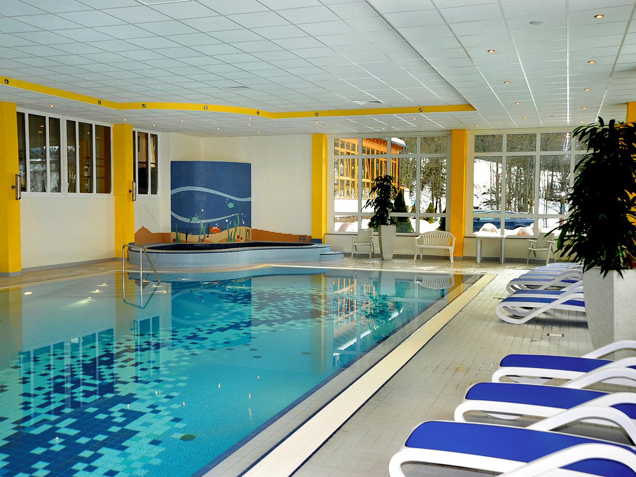 Na een dag op de piste wacht het panoramische binnenzwembad van 15 x 7 meter met een aangename watertemperatuur van 29°C. Het zwembad heeft grote ramen met uitzicht op de bergen en beschikt over een apart kinderbad waar de kleintjes veilig kunnen spetteren in kniehoog water. Bij het zwembad ligt een zonneweide waar je in de zomer heerlijk kunt liggen en genieten van de berglucht. Het saunalandschap omvat een Finse sauna, een biologische grenenhoutensauna, een stoombad en een infraroodcabine. Bijzonder is de aparte gezinssauna waar ook jonge kinderen welkom zijn – mits je een paar simpele regels in acht neemt kunnen zelfs peuters al mee, zoals de Finnen al eeuwenlang doen. Na het sauneren kun je uitrusten in de speciaal ingerichte relaxruimte, of in de zomer op de zonneweide met spectaculair uitzicht op de Hochkönig. Voor massages en cosmetische behandelingen kun je terecht bij het wellnessteam (tegen betaling). Het hotel heeft ook een fitnessruimte met loopband, halters en gymnastiekballen voor wie ook tijdens de vakantie aan conditie wil werken. Alle wellnessfaciliteiten zijn dagelijks geopend en maken deel uit van het all-inclusive pakket, behalve massages, behandelingen en solarium.