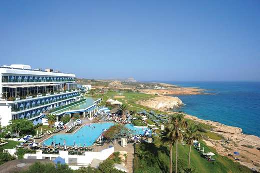 Het hotel ligt op een heuveltje direct aan Pantachou Beach, waardoor je vanuit veel kamers en terrassen uitkijkt over de Middellandse Zee. Het levendige centrum van Ayia Napa met z’n restaurants, bars en uitgaansgelegenheden ligt op korte afstand, maar op het resort zelf heerst een ontspannen vakantiesfeer. De tuinen zijn aangelegd met palmen en mediterrane planten, en overal zijn zitjes waar je heerlijk kunt relaxen met een drankje in je hand.