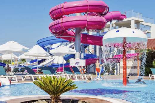 Je kunt een bezoek brengen aan de historische bezienswaardigheden zoals het Antieke Theater en de Apollo Tempel, beide op ongeveer 8,6 km afstand. De Manavgat waterval ligt op 6,5 km en is zeker een bezoek waard. Voor waterliefhebbers zijn er volop watersporten beschikbaar, waaronder snorkelen, duiken en windsurfen. Het hotel zelf beschikt over een waterpark met glijbanen, tennisbanen, tafeltennis, beachvolleybal en een fitnesscentrum. In de omgeving kun je ook paardrijden, minigolf spelen of een dagje naar Titreyengöl gaan, dat op slechts 4,9 mijl ligt.