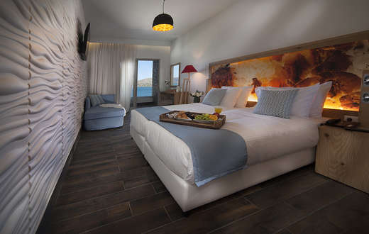 • Double Room Sea View – 18m², geschikt voor 2 personen, met prachtig uitzicht over de baai van Mirabello