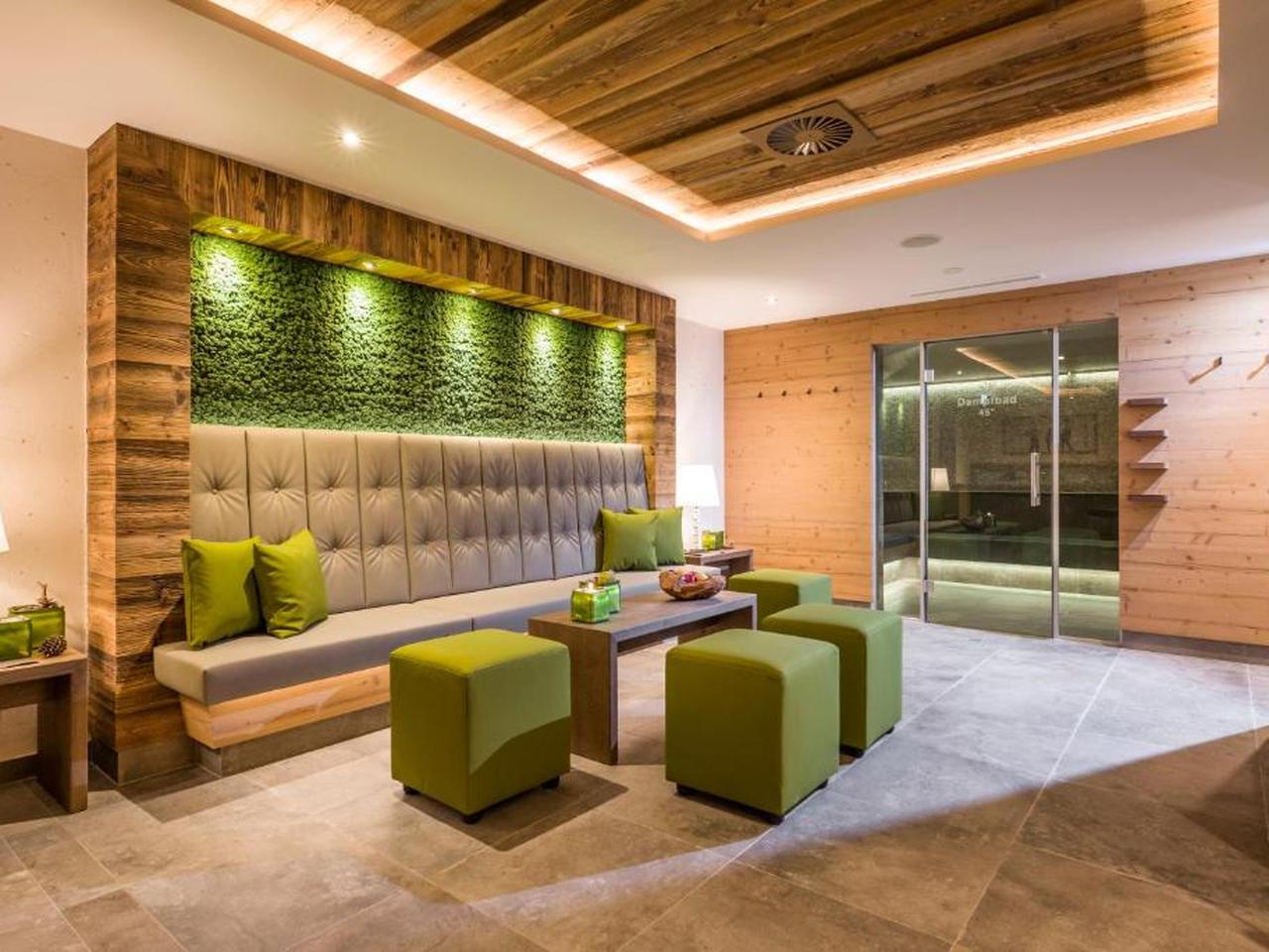 Na het skiën trek je je terug in het moderne wellnesscentrum, dat dagelijks geopend is van 14:00 tot 19:00 uur. De panoramasauna biedt een spectaculair uitzicht op de besneeuwde bergen terwijl je geniet van een hete opgietsessie. Voor wie het wat milder wil, zijn er het Zirben-Kräuterbad (een kruidenstoomcabine met dennengeur) en het Turkse stoombad. De infraroodwarmteligbedden zijn ideaal om stijve spieren te ontspannen, en in de rustruimte kun je volledig tot rust komen met een goed boek. Het binnenzwembad van 15 vierkante meter is open van 07:00 tot 19:00 uur – perfect voor een paar baantjes voor het ontbijt of een verfrissende duik na de sauna. Massages en zonnebanksessies kun je bijboeken aan de receptie.