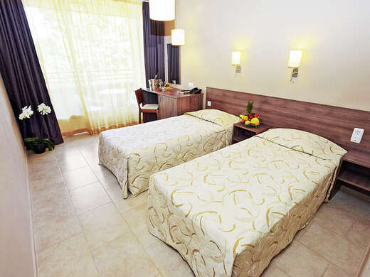 Het Gladiola complex biedt een unieke formule in het hart van Golden Sands: twee hotels onder één dak, maar met toegang tot alle gezamenlijke faciliteiten. De ligging is top: je verblijft midden in dit bekende badplaatsje aan de Bulgaarse Zwarte Zeekust, op slechts 17 kilometer van Varna. Het strand ligt voor de deur, het bruisende centrum om de hoek, en toch vind je hier alle rust en comfort voor een ontspannen vakantie.