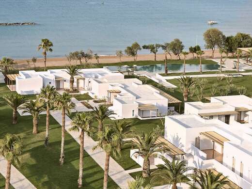 Grecotel Casa Marron is een groot all-inclusive resort aan de Peloponnesos, uitgestrekt over een terrein van 80.000 m² in een weelderige groene omgeving. Het resort combineert een bohemien sfeer met directe toegang tot een 340 meter lang Blue Flag-strand met zacht aflopend water, perfect voor gezinnen met jonge kinderen. Met 267 accommodaties, meerdere restaurants en een uitgebreid activiteitenaanbod voor alle leeftijden is dit een van de meest complete familieresorts van de regio.