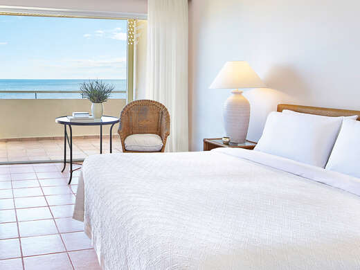 - Courtyard Side Sea View Room – 30m², balkon, gunstig gelegen naast het zwembad in het hoofdgebouw