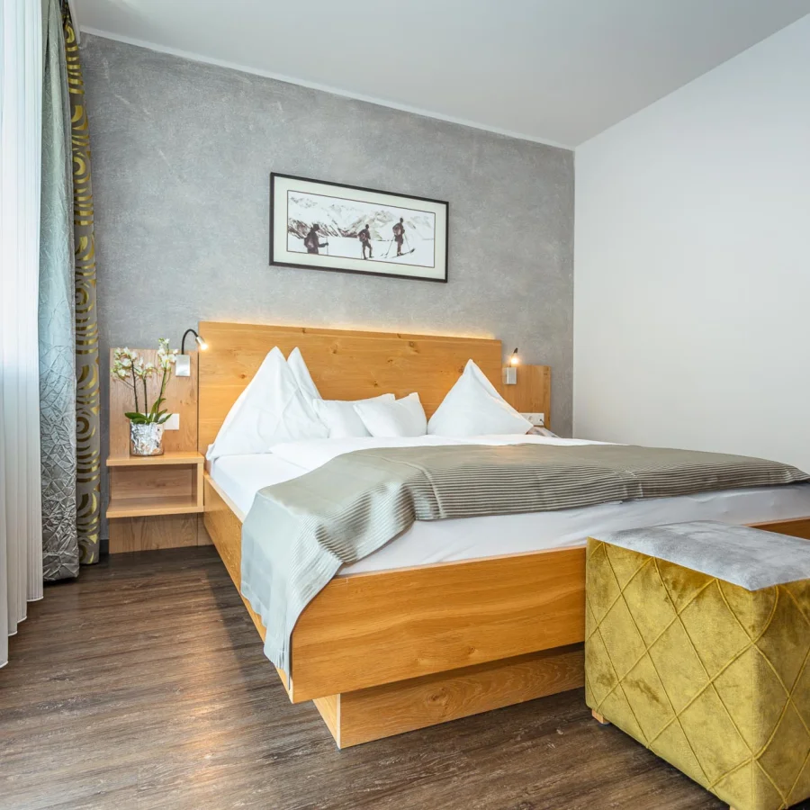 De Superior Double en Triple Rooms bieden met 32m² meer ruimte en zijn perfect voor gezinnen of groepen van drie personen. Deze kamers hebben een tweepersoonsbed en een boxspring bank die uitstekend dient als derde bed (geen bijzetbed dus, maar een echt bed). De badkamer is groter dan in de Standard kamers en heeft een aparte ruimte voor het toilet. Je hebt een bureau waar je rustig kunt kaarten of postcards schrijven, en vanaf het balkon kijk je uit op de Reiterkogel. Elk Superior kamer heeft ook een leeslamp met handige smartphone-oplaadfunctie.