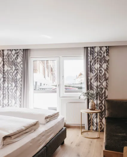 Het hotel biedt een enorme variatie aan kamertypes, allemaal ingericht in warme Alpenstijl met natuurlijke materialen.