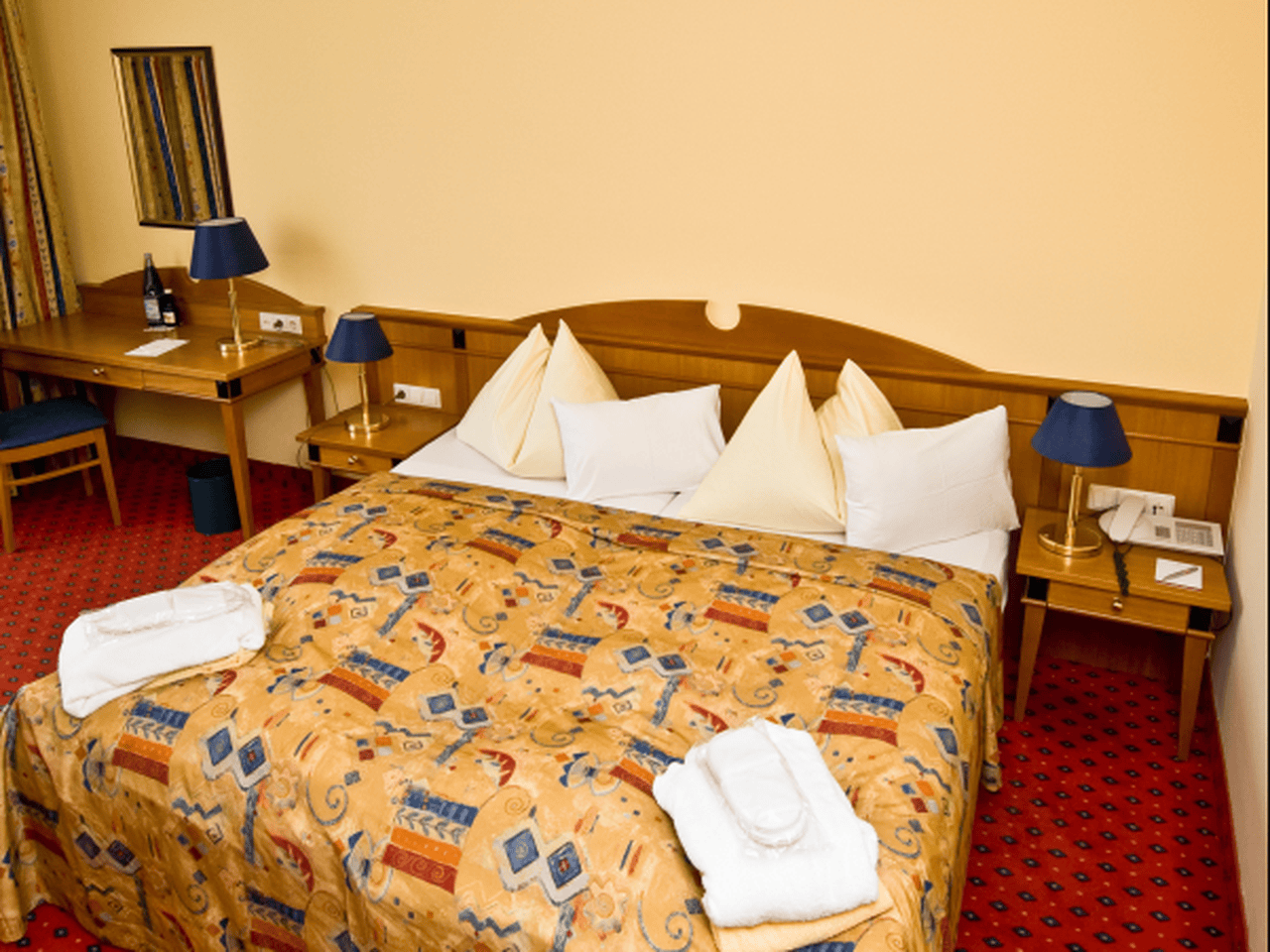 Het hotel telt 119 comfortabele kamers verdeeld over twee met elkaar verbonden gebouwen. Je hebt de keuze uit verschillende categorieën: de single rooms zijn ongeveer 15 vierkante meter groot en beschikken over een badkamer met telefoon, een kleine hal, kamerkluis, minibar, kabeltelevisie met internationale zenders, radio, directe telefoonlijn en een bureau. De double rooms zijn iets ruimer met ongeveer 18 vierkante meter, terwijl de double deluxe kamers ongeveer 22 vierkante meter bieden. Alle kamers hebben dezelfde voorzieningen en een fohn in de badkamer. Voor wie meer ruimte wil, zijn er de Junior Suites die eigenlijk uit twee kamers bestaan en ruimte bieden voor één of twee extra bedden. De meest luxueuze optie zijn de Panorama Suites met spectaculair uitzicht over het dal. Kamers aan de parkzijde hebben allemaal een balkon, terwijl de kamers aan de straatkant zijn uitgerust met grote panoramaramen die je een prachtig uitzicht op de vallei geven. Voor gezinnen biedt het hotel ruime deluxe kamers met een uitklapbare bank of kamers met tussendeuren. Let op: alle kamers zijn rookvrij.