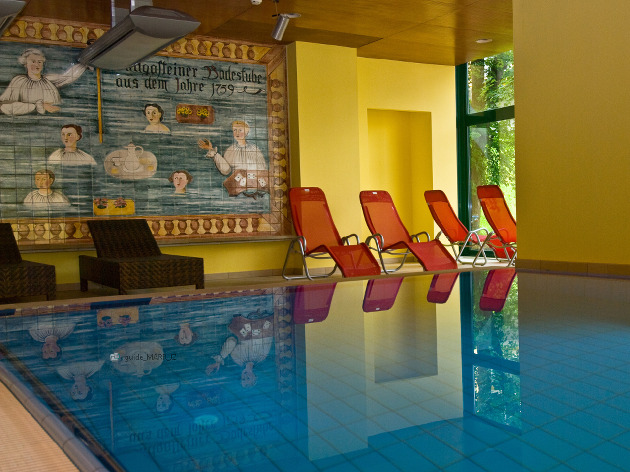 De ligging van dit hotel is bijzonder omdat het rechtstreeks is aangesloten op de natuurlijke thermale bronnen van Bad Gastein. Deze bronnen, die al sinds de 7e eeuw bekend zijn om hun helende werking, komen uit 18 verschillende bronnen op een hoogte van 1000 meter en leveren dagelijks tot 5 miljoen liter thermaal water van 44-47°C. Het mineraalwater vult het verwarmde binnenzwembad van 180 vierkante meter (13 bij 6 meter) dat het hele jaar gratis toegankelijk is. In de winter draaien ook de vier verschillende sauna’s op volle toeren: een klassieke sauna, kruidensauna, bio-sauna en een turks stoombad. Het wellnesscenter beslaat ongeveer 1500 vierkante meter en biedt naast de warmwaterfaciliteiten ook een fitnessruimte die je gratis kunt gebruiken.