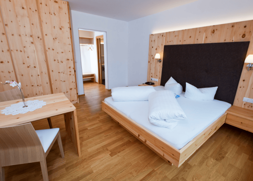 - Bijzonder zijn de Zirm-Zimmer, bekleed met aromaatisch zirbenhouten. Dit speciale hout zorgt voor een heerlijke geur en creëert een prettig woon- en slaapklimaat. Sommige Zirm-Zimmer beschikken over een grote zonneterras – perfect voor wie na een dag skiën graag in de zon bijkomt met uitzicht op de bergen.