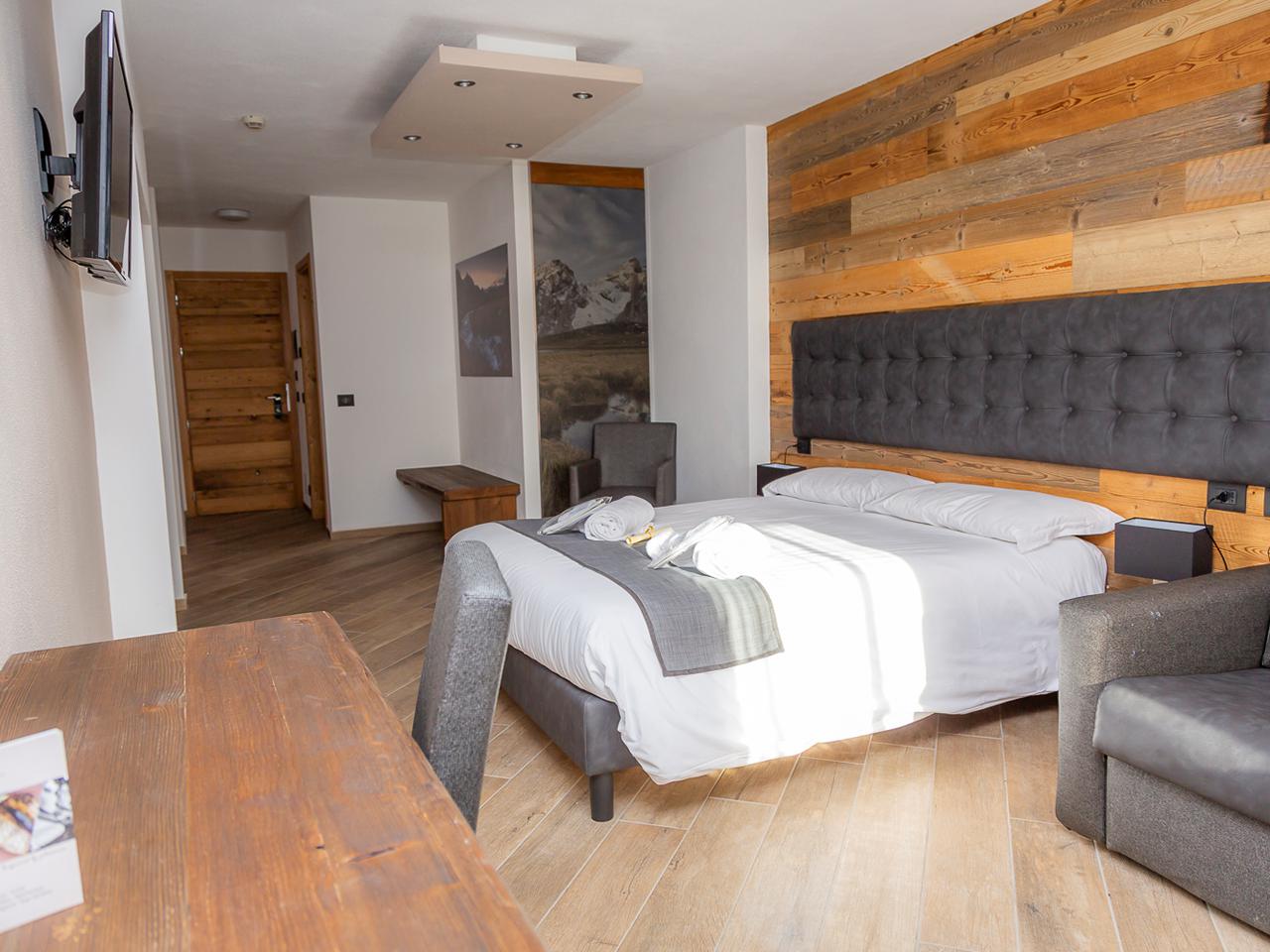 Hotel Gran Roc beschikt over volledig gerenoveerde kamers die allemaal zijn uitgerust met moderne voorzieningen. Alle kamers hebben een privébadkamer met douche, gratis toiletartikelen, haardroger, flatscreen-tv, kluis, waterkoker, minibar, kledingkast en verwarming met individuele bediening. Je geniet overal in het hotel van gratis wifi, zowel op je kamer als in de openbare ruimtes. De Junior Suite is met 30 vierkante meter de ruimste optie en biedt plaats aan 2 tot 4 personen. Deze open kamer beschikt over een dubbel bed plus een slaapbank, perfect voor gezinnen of vriendengroepen. Vanaf het balkon kijk je uit over Sestriere en de omliggende bergen van de Vialattea. Voor koppels die wat meer ruimte willen, is de Deluxe Room ideaal. Deze kamer van 27 vierkante meter heeft een comfortabel kingsize tweepersoonsbed en een eigen balkon met uitzicht op Sestriere of de bergen. De kamers zijn licht en modern ingericht, met de warme uitstraling van een typisch berghotel.