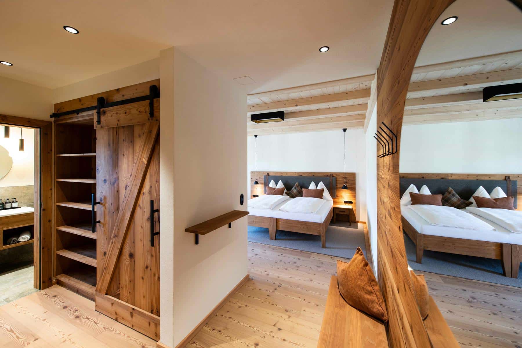 De Double room North Pan (37m²) biedt een uniek natuurpanorama vanaf het balkon en straalt warmte en gezelligheid uit. De Double room North (37m²) kijkt uit op het dorp en de skipiste en heeft naast een balkon ook een leeshoek waar je heerlijk kunt wegdromen na een dag op de latten. De Double room East (36m²) combineert Tiroler charme met duurzaamheid en moderne luxe. De Double Room Center (36m²) beschikt over een balkon en leesruimte met voldoende plek om tot rust te komen.
