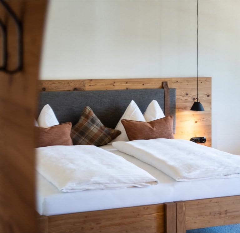 Houd je van zon? Dan zijn de zuidelijk gelegen kamers jouw match. De Double room South (36m²) heeft een ruim terras waar je de hele dag van de bergzon kunt genieten, terwijl de Double room Grand South (44m²) met zijn extra ruimte en zonnig terras perfect geschikt is voor gezinnen die meer plek willen. Alle kamers zijn gemaakt van Zwitserse den en andere natuurmaterialen, en op elk bed ligt hoogwaardige verzorging van het merk Luis Trenker klaar. In je kamer vind je ook een eigen theestation met Alpenkruiden, zodat je altijd een verse kop thee kunt zetten.