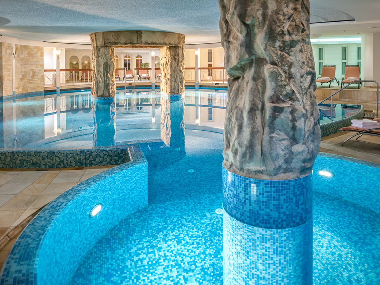 Het wellnesscentrum is indrukwekkend groot met een wateroppervlak van 240 m². Het verwarmde binnen-buitenzwembad is het hele jaar door geopend en je kunt via een doorgeef-sluis van binnen naar buiten zwemmen onder de sterrenhemel. De sauna-area is opgedeeld in een textiel en textielvrij gedeelte. Je vindt hier de Tiroler Schwitzstube (Finse sauna), een zachte bio-sauna, infrarood ligbedden, en de Kräuterstube (Alpenkruiden stoombad). Daarnaast zijn er een tepidarium (Ruhestube) voor rustgevende warmte en een laconium (Wärmestube). Er is ook een ijskamer voor afkoeling tussen de saunagangen door. De spa heeft uitgebreide rustgebieden om tot rust te komen, een aparte meditatie- en yogaruimte, en 7 behandelkamers waar je kunt kiezen uit massages en beautybehandelingen op maat. Het team van therapeuten gebruikt natuurlijke ingrediënten en producten die worden afgestemd op je persoonlijke wensen.