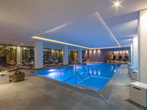 Het Gold Spa wellnesscentrum opent vroeg om 7:00 uur, zodat je voor het ontbijt al een frisse duik kunt nemen in het binnenzwembad van 5 bij 11 meter. Het zwembad is gevuld met Grander water en heeft een aangename temperatuur, met rondom voldoende ligbedden om na te genieten. De spa blijft open tot 21:00 uur, de sauna’s zijn toegankelijk van 15:00 tot 21:00 uur.