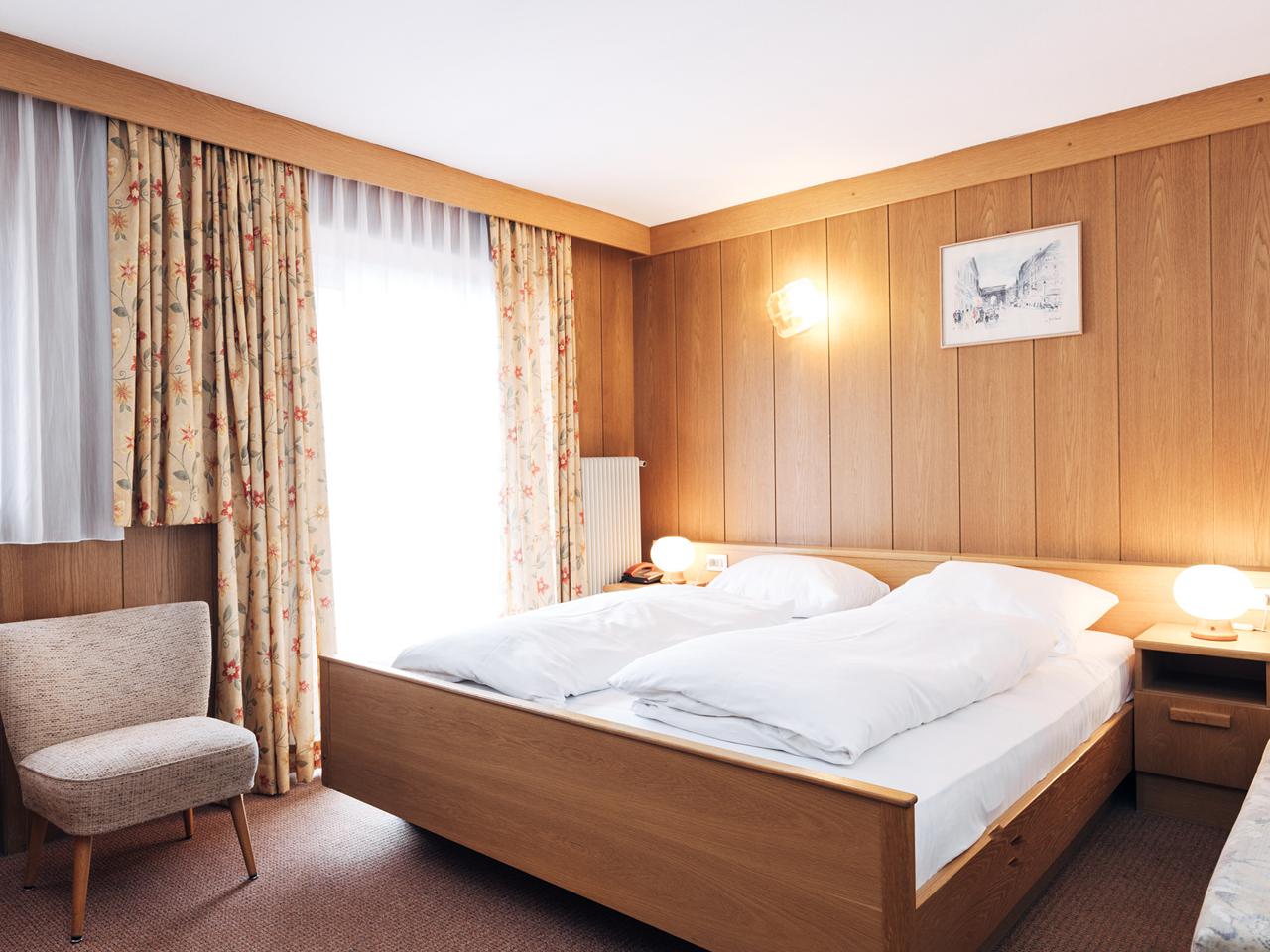 Hotel Olympia beschikt over twee kamertypes die allebei praktisch en knus zijn ingericht. De 1-persoonskamer is geschikt voor maximaal twee personen (één volwassene en één kind tot 12 jaar) en heeft een éénpersoonsbed. Elke kamer heeft een balkon waar je ’s ochtends of na een lange skidag even lekker kunt bijkomen met uitzicht op de bergen. De verwarming kun je individueel regelen, handig als je het graag warm of juist fris hebt. Verder vind je op de kamer satelliet-tv, telefoon en een badkamer met douche, wastafel, toilet, bidet en föhn.