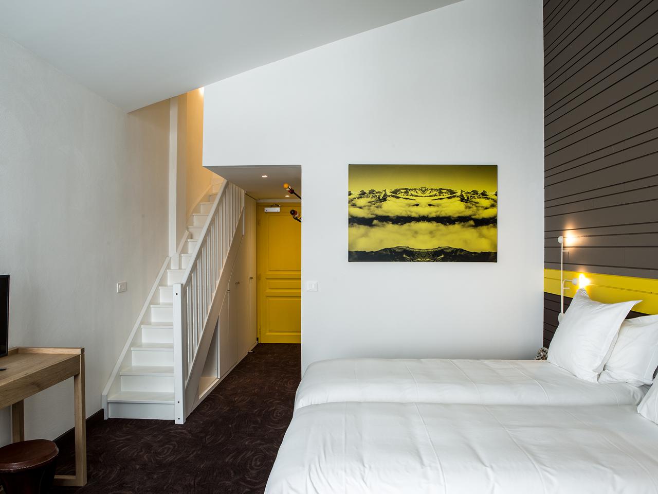 De kamers met balkon zijn bijzonder populair bij gasten die ’s ochtends wakker willen worden met uitzicht op de bergen of pistes. De Large Mezzanine Room (48 m²) heeft een zuidelijke ligging met balkon en bergzicht, biedt slaapruimte voor 4 personen verdeeld over twee verdiepingen, en beschikt over zowel een badkamer met bad als een met douche. De Large Plus Room (35 m²) en Large Room (29 m²) hebben allebei een balkon met direct zicht op de skipistes aan de zuidkant – heerlijk om ’s avonds met een drankje te kijken hoe de laatste skiërs naar beneden komen. Voor wie minder ruimte nodig heeft, zijn er de Medium en Small kamers. De Medium Mezzanine Room van 35 m² heeft een mezzanine-constructie die ruimte biedt aan 4 personen, met dorpszicht richting het noorden. De Medium Room (21 m²) en Small Room (19 m²) zijn compact maar compleet, beide met twee aparte bedden. Alle kamers hebben een eigen toilet, haardroger, kluis, flatscreen-tv en gratis WiFi. Let op: het hotel is niet toegankelijk voor rolstoelen.