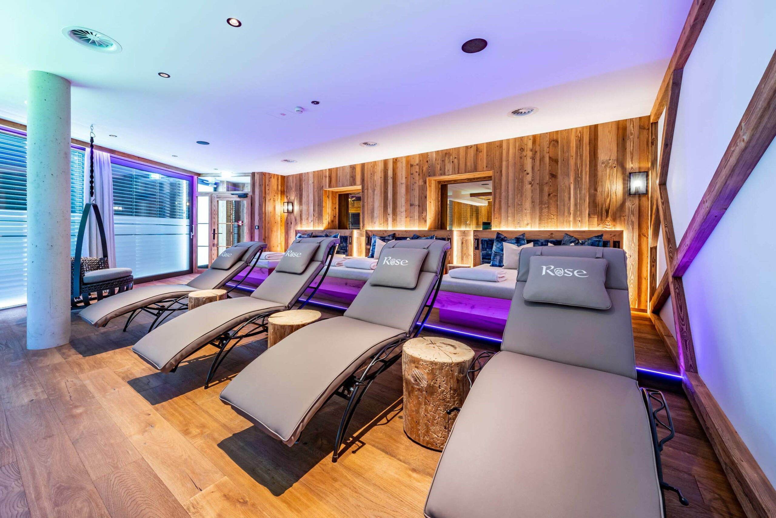 Sinds winter 2022 heeft Hotel Rose een gloednieuwe wellnessoase. Hier vind je verschillende saunas, ijsbrunnen, speciale doucheruimtes, rustruimtes, infraroodligbedden en een aromagrot. Perfect om je vermoeide spieren na een dag in de sneeuw te laten herstellen. De fitnessruimte is uitgerust met moderne apparatuur: een loopband, crosstrainer, TechnoGym multifunctioneel apparaat en een ergometer. Zo kun je ook tijdens je wintersportvakantie actief blijven.