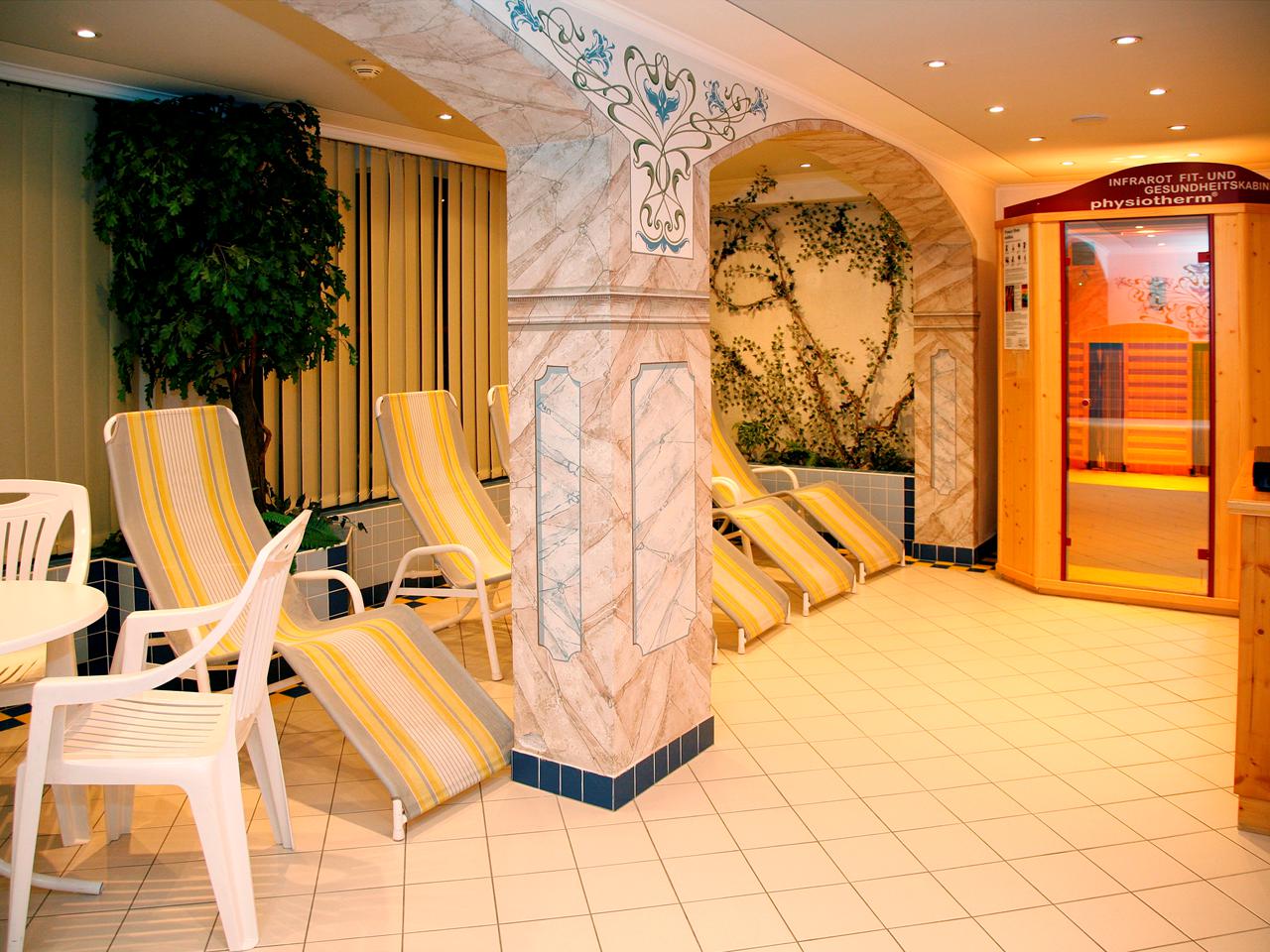 Na het skiën kun je uitstekend ontspannen in de wellnessruimte van ongeveer 120 m². Het wellness-aanbod omvat twee sauna’s, een Turks stoombad, twee infraroodcabines en twee infraroodligstoelen. Daarnaast zijn er massage- en watervaldouches beschikbaar. De wellnessruimte is dagelijks geopend van 15:30 tot 18:00 uur en het gebruik is gratis voor hotelgasten. Voor wie extra luxe wil, is er een jacuzzi en een solarium beschikbaar tegen betaling. Badjassen kun je meenemen of huren voor een servicevergoeding van €10 per badjas per verblijf.
