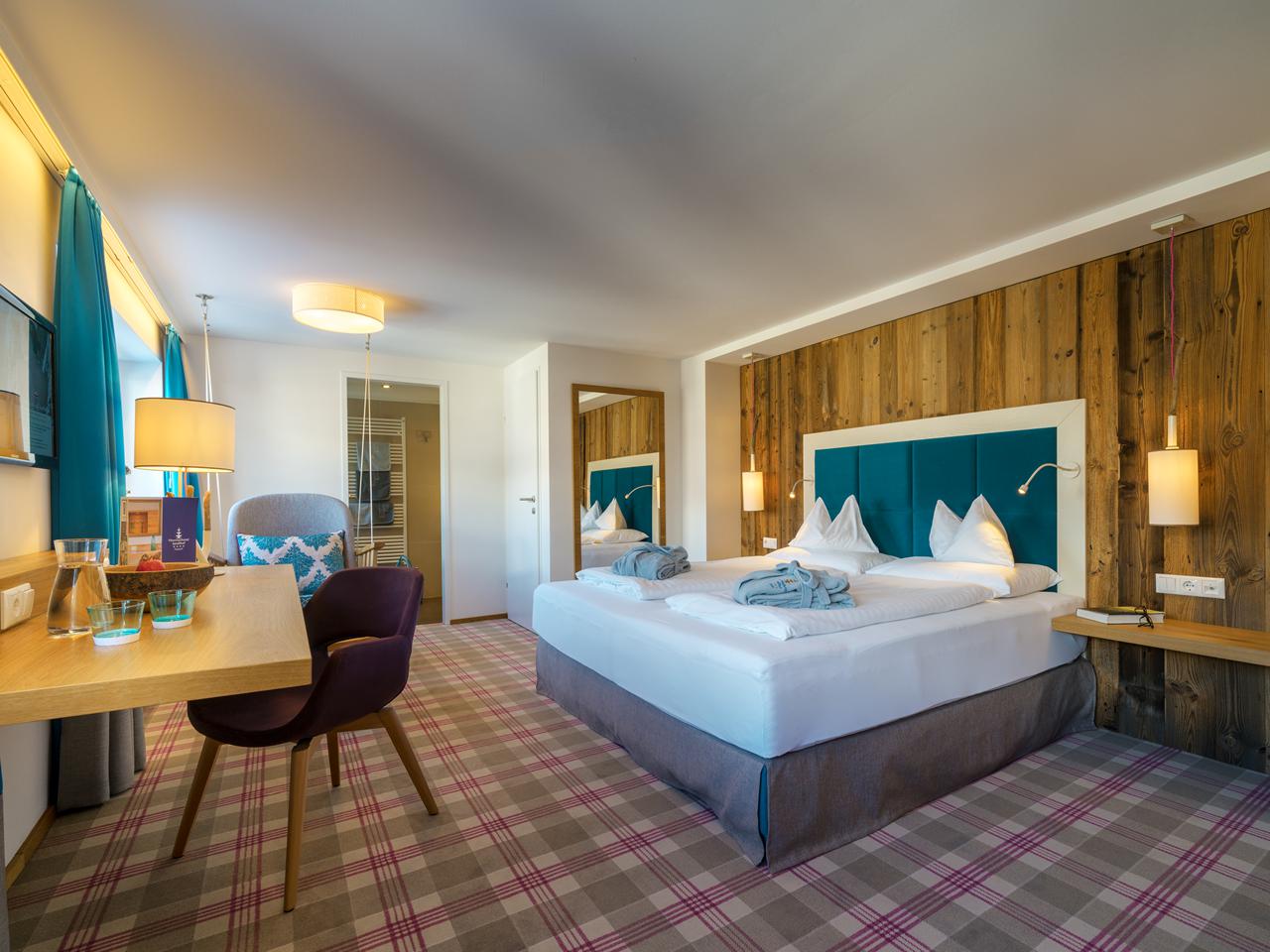Het Sendlhofer’s telt in totaal 60 hotelkamers in modern-alpiene stijl, verdeeld over verschillende categorieën. De kleinste optie is de Bedroom Single van ongeveer 17 m² voor solo-reizigers, met een hangstoel en balkon. Voor stellen zijn er meerdere keuzes: de compacte Bedroom Mini (17 m²), de iets ruimere Bedroom Cozy (21 m²) met uitzicht op de tuin, en de Bedroom Spacious van 27 m². Wie meer ruimte zoekt, kiest voor de Bedroom Relax van ongeveer 35 m², voorzien van een aparte zithoek. Voor gezinnen of vriendengroepen zijn de studio’s ideaal. De Studio Schlossalm (40 m²) heeft een aparte woonruimte, kitchenette en biedt plek aan 2-5 personen. De grotere Studio Stubnerkogel van 50 m² combineert een gezellige hotelkamer met flexibele elementen en is geschikt voor 2-4 gasten. In het aangrenzende gastengebouw vind je 16 volledig uitgeruste appartementen, allemaal met direct toegang tot de tuin. Het compacte Apartment Kreuzkogel (50 m²) is perfect voor koppels, terwijl het Apartment Graukogel (70 m²) met panoramaramen en balkon geschikt is voor 2-4 personen. Het Apartment Angertal (86 m²) heeft een terras met directe toegang tot de tuin. Het Apartment Prossau (81 m²) ligt op de tweede verdieping en biedt prachtig uitzicht op de bergen met een woonkeuken. Voor grotere gezinnen is het Apartment Ankogel (102 m²) een topkeuze met twee balkons en ruimte voor 5 personen. Het grootste appartement is de Silberpfennig van 112 m², waar tot 6 personen kunnen verblijven.