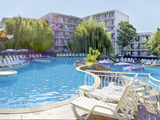 Het hotel ligt direct aan het Blue Flag-strand van Albena, met het natuurreservaat Baltata in de buurt. Het centrum van Albena bereik je in ongeveer 10 minuten lopen. De luchthaven van Varna ligt op 40 kilometer afstand. Het waterpark Aquamania vind je op 1,5 kilometer van het hotel.