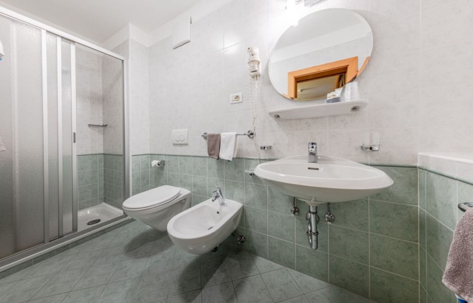 Tot slot is er een ruime Single Room van ongeveer 15 vierkante meter voor individuele reizigers. Deze kamer heeft moderne Alpine meubels, houten vloeren, een groot badkamer met douche en een balkon met fantastisch uitzicht op de Dolomieten.