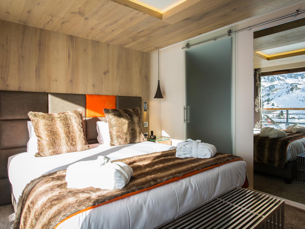 Voor stellen of vrienden kies je uit de Classique (24m²) met uitzicht op het Place Olympique en het dorp aan de noordoostkant, of de Club (24m²) die zuidelijk ligt met panoramisch uitzicht op de pistes. Beide hebben een ligbad en twee losse bedden die je aan elkaar kunt schuiven tot een tweepersoonsbed. Wil je iets meer ruimte? Dan zijn er de Privilège en Supérieure kamers van 29m². Deze hebben naast een ligbad ook een aparte douche, en een slaapbank waar een derde persoon kan slapen (ideaal voor een kind tot 16 jaar). Het verschil zit vooral in het uitzicht: Privilège kijkt noordoostelijk uit op het dorp, Supérieure zuidelijk of zuidoostelijk op de pistes.