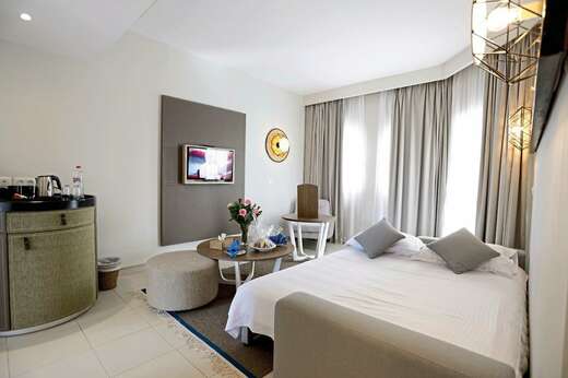 - Superior garden villa’s: met woonkamer en aparte slaapkamer, gemeubileerd terras met tuinzicht