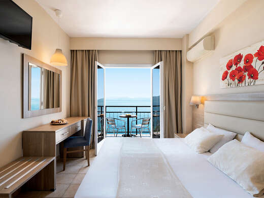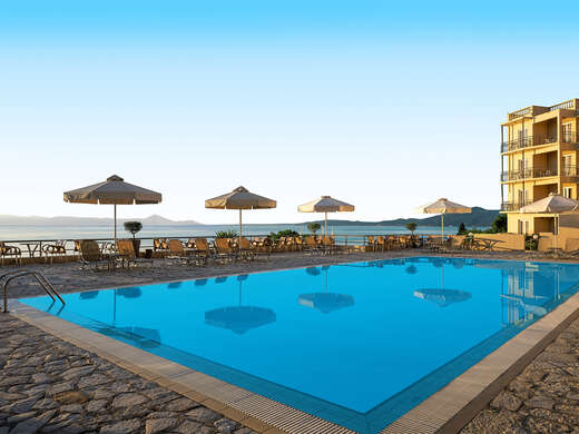 Het buitenzwembad is gevuld met zeewater en heeft een heerlijk zonneterras eromheen met gratis ligbedden en parasols. Perfect voor een dagje luieren in de zon! Er is ook een badhanddoekenservice, dus je hoeft je eigen handdoeken niet mee te slepen. Het privéstrand ligt op een steenworp afstand en is een kiezelstrand. Ook hier staan gratis ligbedden en parasols voor je klaar. Hou je van watersport? Vlakbij het strand kun je terecht voor verschillende watersporten via externe aanbieders, zoals een duikcentrum waar je de onderwaterwereld van Corfu kunt ontdekken.