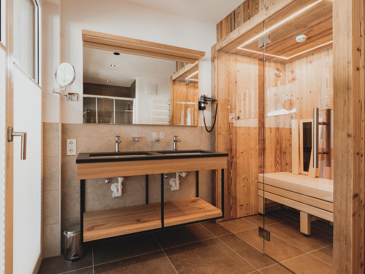 De 150 m² grote wellnessoase in Haus Porti Sport staat gratis open voor alle gasten en biedt meerdere sauna’s en ontspanningsmogelijkheden. Je kunt kiezen tussen een Finse sauna, een biologische dennensauna, een stoomcabine en het bijzondere Perzische King zout-tepidarium. Na het sauneren verfrissen de Deluxe douches je weer op, waarna je kunt uitrusten in de dennenzout rustruimte of op de warmtebank. Bij de thee-, sap- en fruitbar kun je gratis drankjes en fruit pakken. Badjassen en wellnesstassen liggen al in je appartement klaar, saunahanddoeken vind je direct in de wellnessruimte. Voor gasten van Haus Tuenta zijn er afsluitbare lockers en kleedkamers beschikbaar. In de winter is de wellness dagelijks geopend van 16:00 tot 20:00 uur (behalve op zaterdag), in de zomer dagelijks van 15:00 tot 20:00 uur.