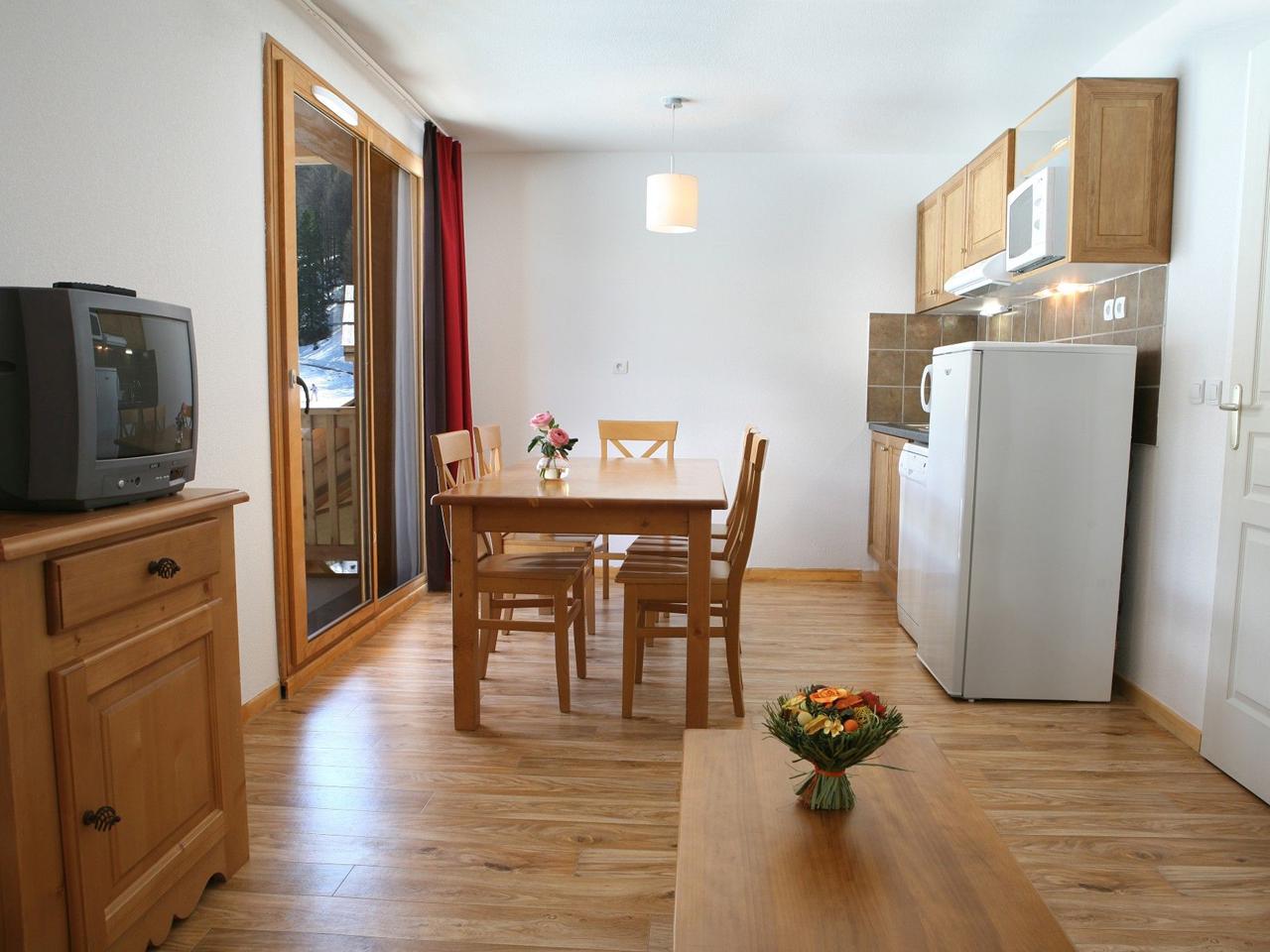 Alle appartementen zijn uitgerust met een complete kitchenette waar je zelf je maaltijden kunt bereiden. Je beschikt over een koelkast, kookplaat, magnetron (of combimagnetron), koffiezetapparaat en een vaatwasmachine – zo hoef je na een lange skidag niet ook nog eens lang in de keuken te staan. Elk appartement heeft een televisie (tegen betaling) en een balkon met buitenzitje, waar je ’s avonds heerlijk kunt genieten van het bergpanorama.