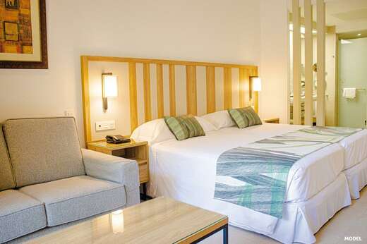 De meer dan 950 kamers zijn stijlvol ingericht in witte tinten met houten elementen. Er zijn verschillende kamertypes beschikbaar, van comfortabele standaardkamers tot luxe swim-up kamers met directe toegang tot het zwembad. Wil je echt in de watten worden gelegd? Kies dan voor een ruime suite van 55m² met aparte kleedkamer en ligbad. Alle kamers beschikken over airconditioning, een minibar, een balkon of terras en een liquor dispenser.