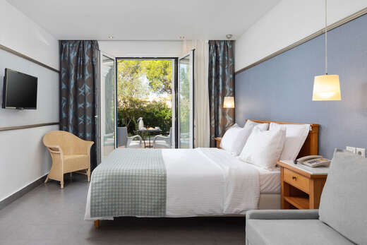 In de adults-only zone staat de Superior Room (30m²) waar je gegarandeerd rustig kunt ontspannen, ver weg van het kindergewoel. Voor gezinnen die juist in de actie willen zitten, is er de Superior Room bij het aquapark (28m²) – letterlijk tegenover de glijbanen! Tot slot zijn er ook de Comfort Double Room (23-25m²) en Comfort Family Room (35m²), beide met alle gemakken en een heerlijk uitzicht.