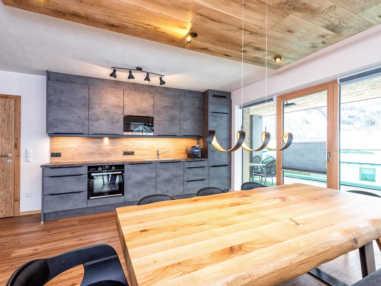 - Apartment 1 en 3: “Alpine Eleganz” zijn identieke appartementen van 93 m² die geschikt zijn voor 6 tot 8 personen. Deze units combineren modern design met alpiene charme en bieden jullie een privésauna om heerlijk tot rust te komen na een dag op de piste. De automatische pelletkachel zorgt voor knusse avonden in de woonkamer, en vanaf het ruime balkon geniet je van spectaculair uitzicht op de Zillertaler Alpen. De volledig uitgeruste luxe keuken nodigt uit om samen te koken, en elke slaapkamer heeft een eigen badkamer – ideaal voor privacy en comfort.