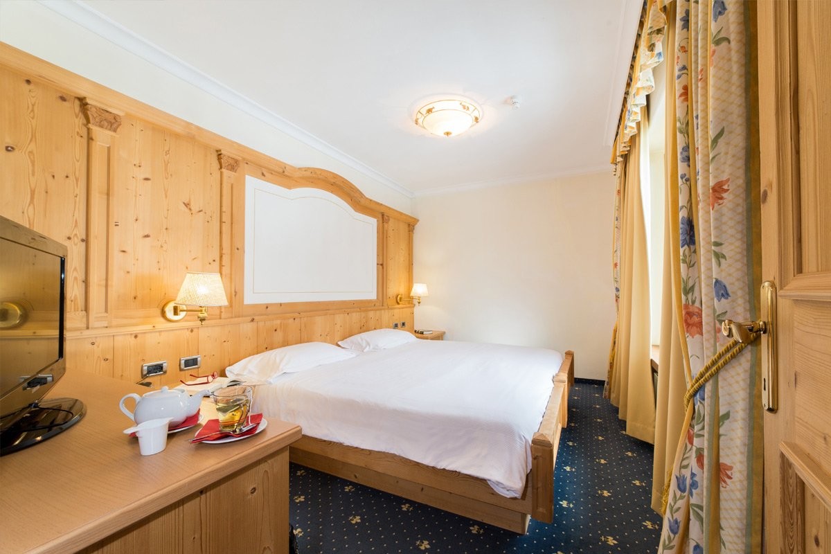 De Superior kamers liggen in de nieuw gebouwde vleugel en zijn flink ruimer opgezet. Hier zie je overal mooie houtbetimmering en de badkamers hebben luxe vloerverwarming – ideaal na een dag in de sneeuw. Ook deze kamers beschikken over tv, kluis, koffiehoek, minibar en meestal een balkon.