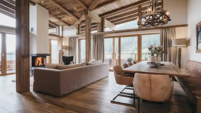 De lodge ligt midden in het skigebied Serfaus-Fiss-Ladis; je hebt de gelijknamige skipas nodig. De dichtstbijzijnde lift is de Alpkopfbahn (een gondel), op ongeveer 350 meter lopen. De piste zelf ligt al op 250 meter. Dit is dus geen ski-in/ski-out tot aan de deur, maar wel erg dichtbij. Binnen Serfaus zelf verplaats je je makkelijk met de ‘Dorfbahn’ (U-Bahn) naar de verschillende liftstations, zoals de Komperdellbahn. Het hele gebied is aaneengesloten, dus je skiet zonder skibus naar Fiss en Ladis.