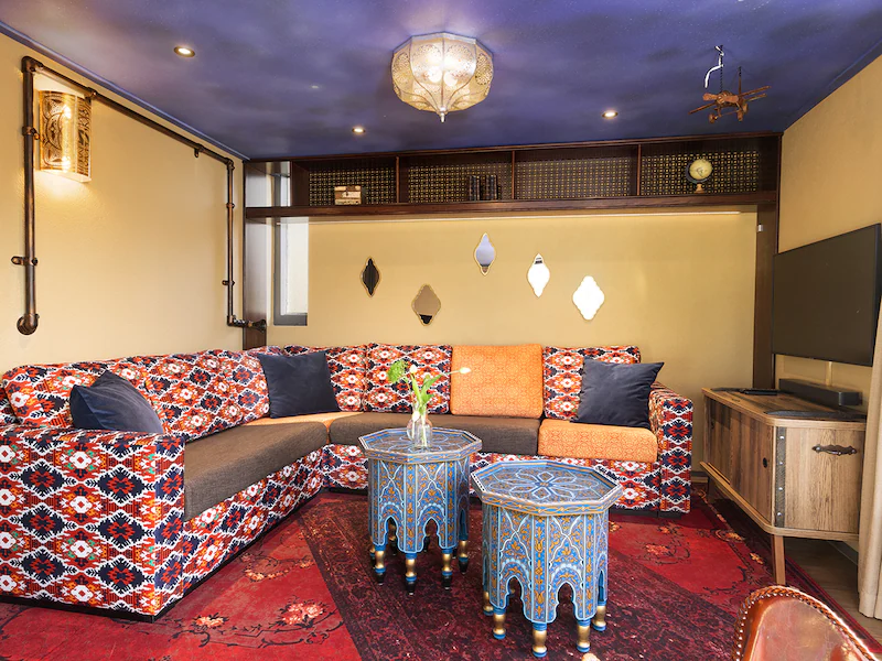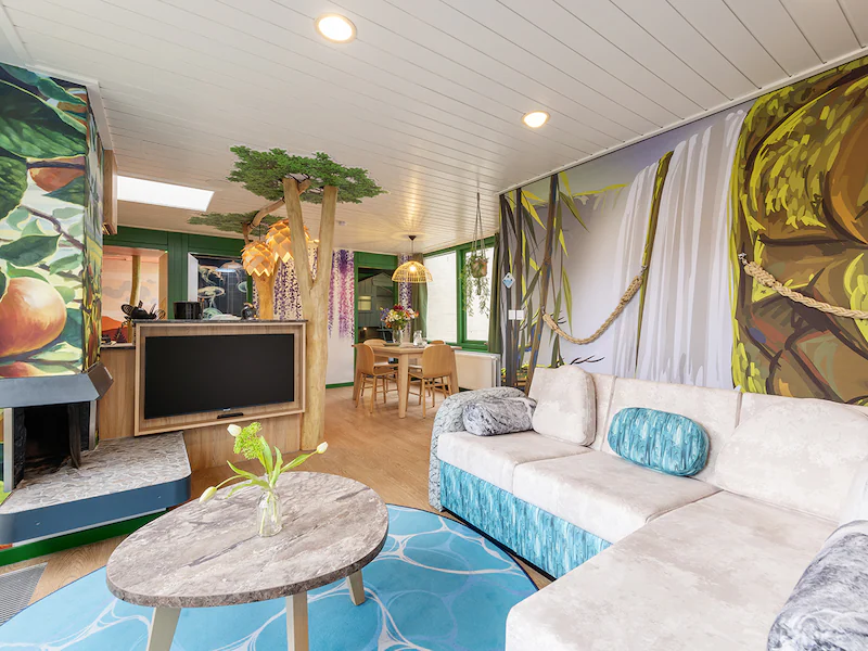 In de Wonders of Nature Cottage bij Center Parcs De Huttenheugte stap je in de voetsporen van twee natuuronderzoekers. Deze unieke 4-persoons cottage (59m²) brengt de wonderen van de natuur letterlijk binnen. In de woonkamer klettert een echte waterval over de bank, compleet met rotsachtige details en zachte sierkussens als losse stenen. De ouderslaapkamer is geïnspireerd op gigantische Sequoia-mammoetbomen uit Amerika, terwijl de badkamer een lichtgevende onderwaterwereld vormt. In de kinderslaapkamer met stapelbed wacht een vulkanisch landschap waar de vloer lava is – een echte uitdaging voor kleintjes. De keuken heeft een wilde bloemenweide-thema met een speciale tekenmuur waar kinderen hun creaties kunnen maken.