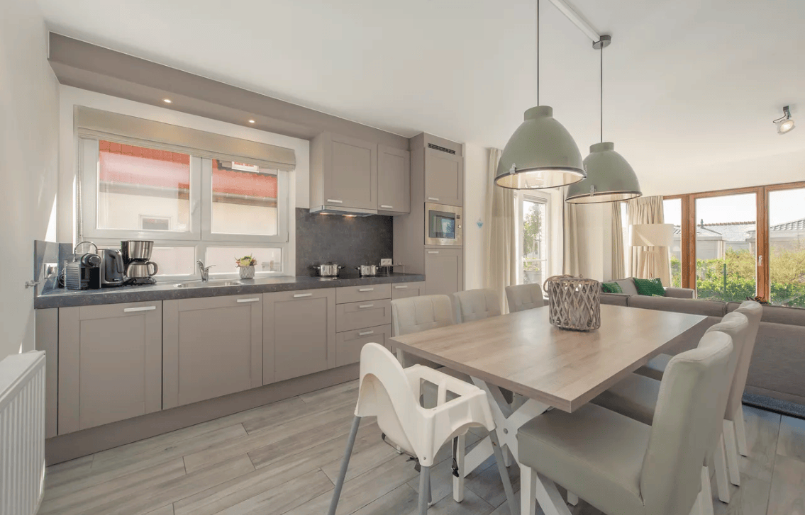 De Zandduin kindervilla’s van Landal Strand Resort Ouddorp Duin zijn volledig ingericht voor gezinnen met jonge kinderen. Deze vrijstaande 6-persoonsvilla van circa 90 m² biedt drie slaapkamers en twee badkamers, waaronder een speciale kinderkamer met hoogslaper en eenpersoonsbed. Het huisje is compleet kidsproof gemaakt met traphekjes, kindveilige stopcontacten en kindersloten op alle keukenkastjes. Daarnaast vind je er een babybad, commode, kinderstoel, toiletverkleiner, kinderservies en zelfs speelgoed. In de woonkamer staat een speeltafel met spelletjes en de kinderkamers hebben vrolijke kleuren en een krijtbord.