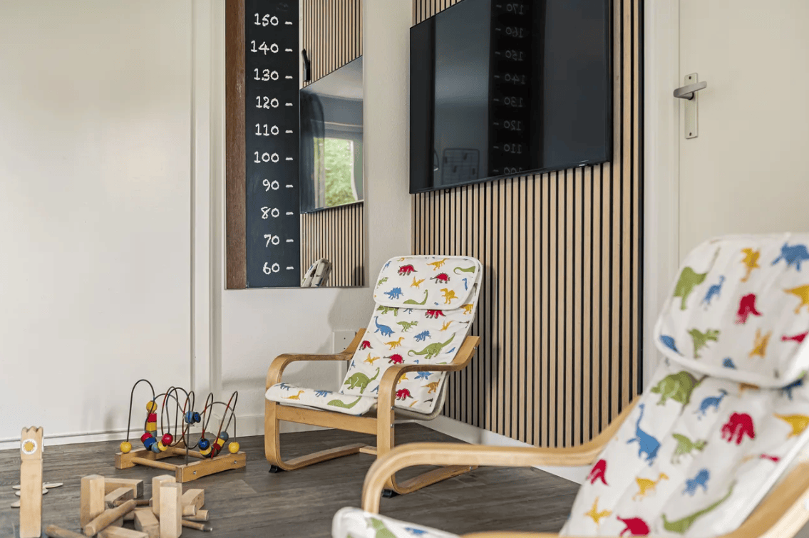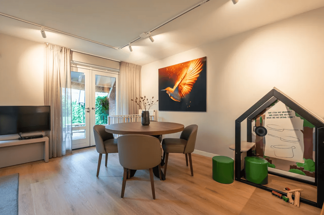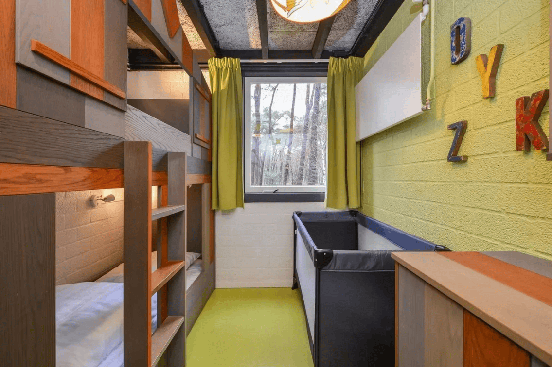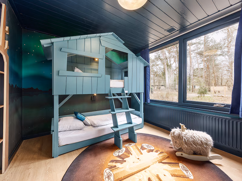 Bij EuroParcs Hoge Kempen in het Belgische Zutendaal staan twee unieke kindercottages die speciaal zijn ontworpen om kinderen te verrassen. De Kids Cottage heeft een kinderslaapkamer met een bed in de vorm van een speelhuisje en een onderschuifbed, perfect voor kinderen tot 8 jaar. In de kamer vind je een eigen smart-tv met ingebouwde Nintendo Switch inclusief twee controllers en actuele games. Ook liggen er leuke moderne bordspelletjes zoals Regenwormen en 30 Seconds Junior netjes opgeborgen in kastjes. De Kids Adventure Cottage biedt vergelijkbare voorzieningen met eveneens een Nintendo Switch en een uitschuifbed in de kinderkamer. Beide cottages zijn gelijkvloers en geschikt voor gezinnen met 2 volwassenen en 2 kinderen.