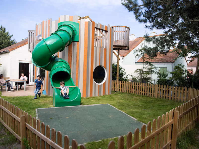 De Premium Kindercottage bij Center Parcs Port Zélande in Ouddorp is een waar speelparadijs voor gezinnen met jonge kinderen. Deze kleurrijke cottage van 79 m² heeft een unieke speelkamer waar kinderen kunnen klimmen en spelen, compleet met eigen speelgoed. Het absolute hoogtepunt is de speelhut in de omheinde tuin met een privé-glijbaan, waar de kleintjes direct vanuit de speelkamer naartoe kunnen glijden. De cottage heeft 2 slaapkamers (met tweepersoonsbed en stapelbed) en is bij aankomst al helemaal klaar met opgemaakte bedden. Extra comfortabel voor ouders: een tweede tv op de slaapkamer en een open haard in de woonkamer.