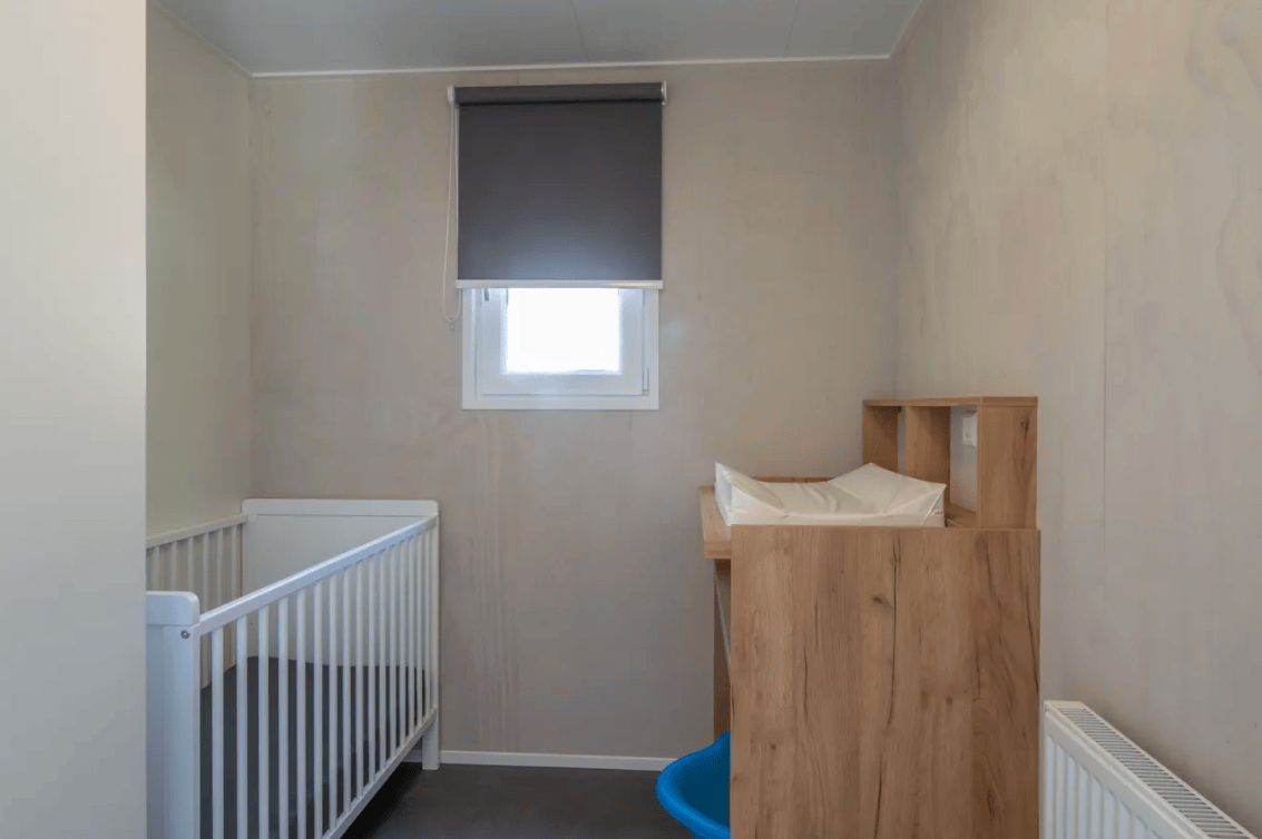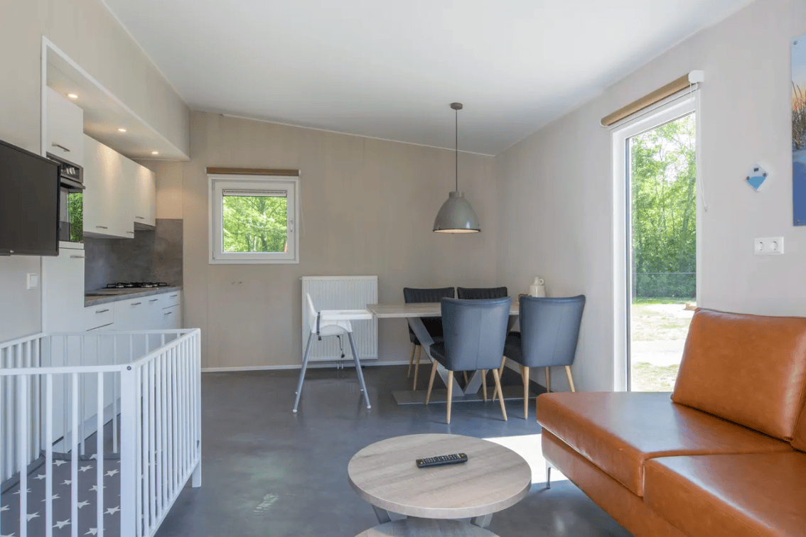 Het Comfort 5 Kindvriendelijk chalet op Vakantiepark Kijkduin is speciaal ingericht voor gezinnen met kleine kinderen. Dit vrijstaande huisje van ongeveer 50 m² biedt plek aan 4 personen plus 1 baby en is compleet uitgerust met babyspullen zoals een commode, babybadje, kinderstoel en kinderbox. Het chalet heeft 3 slaapkamers, waarvan twee met eenpersoonsbedden en één met een babybedje. De smart-tv beschikt over streamfuncties, zodat je je eigen accounts kunt gebruiken. Het terras met tuinmeubilair is perfect om buiten te ontspannen terwijl de kinderen spelen.