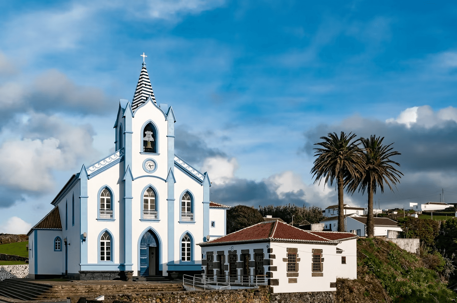 Graciosa is het op één na kleinste eiland van de Azoren en draagt trots de bijnaam “het witte eiland” dankzij zijn lichte gesteente. Dit vlakke, rustige eiland werd door UNESCO uitgeroepen tot Wereldreservaat Biosfeer. Over het glooiende landschap zie je overal de karakteristieke rode windmolens, geïnspireerd op Vlaamse molens en ooit symbool van de bloeiende graanproductie. Maar de échte parel is Furna do Enxofre, een spectaculaire ondergrondse zwavelgrot in de Caldeira-krater met het mysterieuze Lagoa do Styx meer. Een rondleiding hier is onvergetelijk!