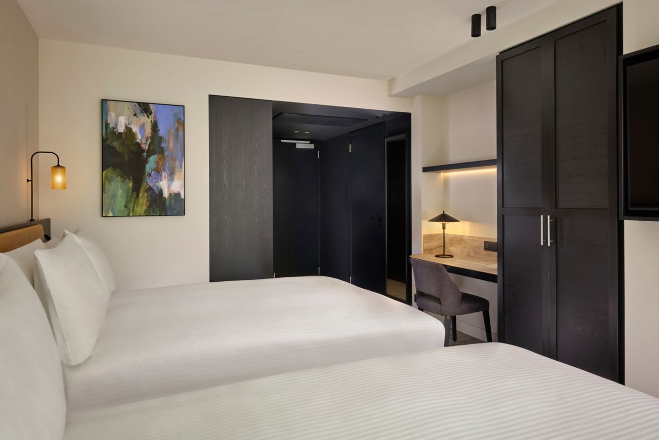 Het Courtyard by Marriott Ghent is een ultramodern hotel met 174 kamers, perfect gelegen nabij de tech lane en businessparken van Gent. Je bereikt het hotel moeiteloos via de E17 snelweg, en het centrum van deze authentieke Belgische stad ligt op korte afstand. De kamers zijn eigentijds ingericht met het kenmerkende Courtyard signature bed, moderne werkplekken en snelle WiFi. Kies uit verschillende kamertypes zoals de Deluxe Guest rooms met king- of twee tweepersoonsbedden, de ruime Junior Suite of de Premium Guest rooms. Of je nu zakelijk reist of met het gezin komt, alle kamers bieden het comfort dat je nodig hebt voor een heerlijk verblijf.