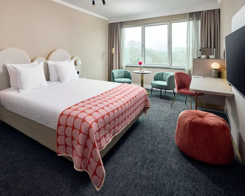 Het Radisson Collection The National Hotel Brussels ligt in het groene Sterrebeek, direct aan The National Golf Brussels. Dit luxe hotel beschikt over 150 elegante kamers en suites, allemaal ontworpen door de Belgische architect Olivier Dwek met lichte tinten, veel natuurlijk licht en mooie houten materialen. Je kiest uit verschillende kamertypes zoals de Collection Room Garden View of Lake View (33m²), de ruimere Collection Superior en Premium Rooms (35m²), de Junior Suite (43m²) of een van de grote Suites en Premium Suites tot 73m². Alle kamers bieden schitterend uitzicht over de golfbaan of het meer.