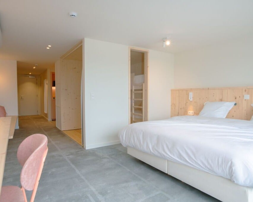 ZAELIG Hotel is een 100% family proof boutique hotel met 22 hippe kamers in de rustgevende, groene velden op 10 minuten van Knokke-Heist. Dries en Florence runnen als derde generatie dit warme nest waar je echt thuiskomt. Je kiest uit vier kamertypes: de Green Room van 20 m² met privéterras (vanaf €110), de Blue Room van 30 m² met kitchenette en balkon (vanaf €130), de Yellow Room van 36 m² met mezzanine voor vier personen (vanaf €150) of de Pink Room van 44 m² met stapelbed en volledige keuken (vanaf €175). Alle kamers hebben airconditioning, Chromecast, gratis WiFi en een eigen badkamer met douche.
