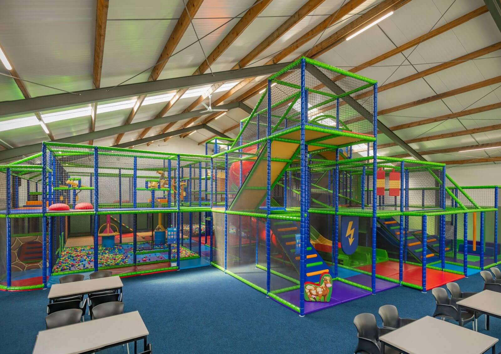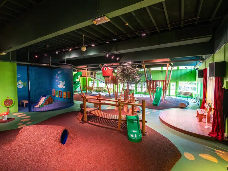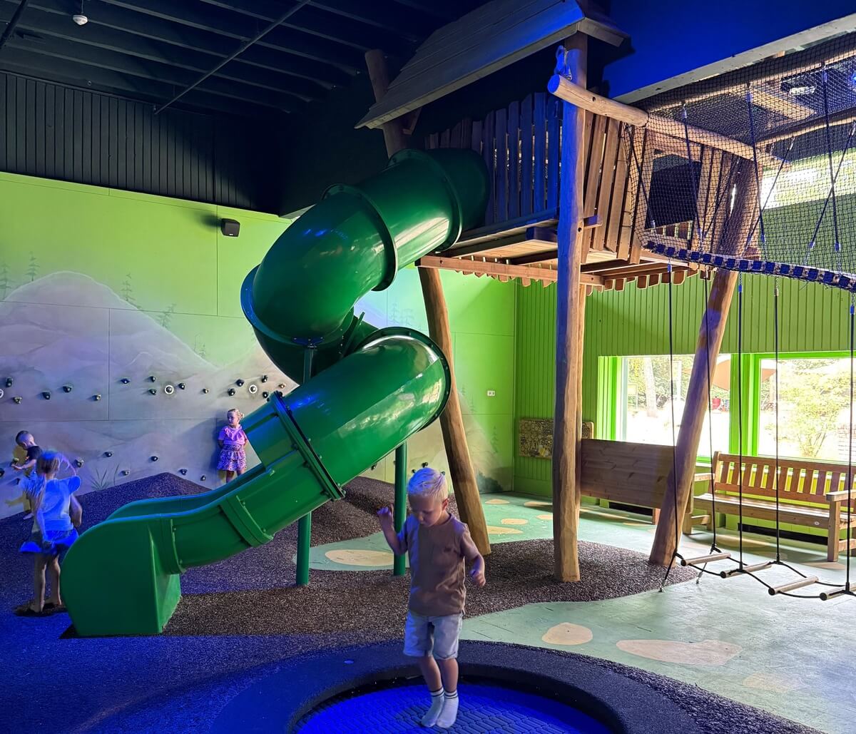 Het Indoor Speelparadijs is een avonturenland voor de kinderen! Deze grote speelruimte is thematisch aangekleed en sfeervol verlicht, waardoor het meteen een bijzondere sfeer heeft. Kinderen kunnen hier lekker klimmen in de klimtorens, klauteren over touwbruggen, kruipen door netten en roetsjen van de glijbaan. Ook heel tof is het high rope parcours. Verder is er een gezellige ballenbak en voor de allerkleinsten een apart speelgedeelte. Ondertussen kunnen jullie comfortabel plaatsnemen aan één van de picknicktafels met goed zicht op de spelende kids en iets lekkers bestellen bij het horecapunt.
