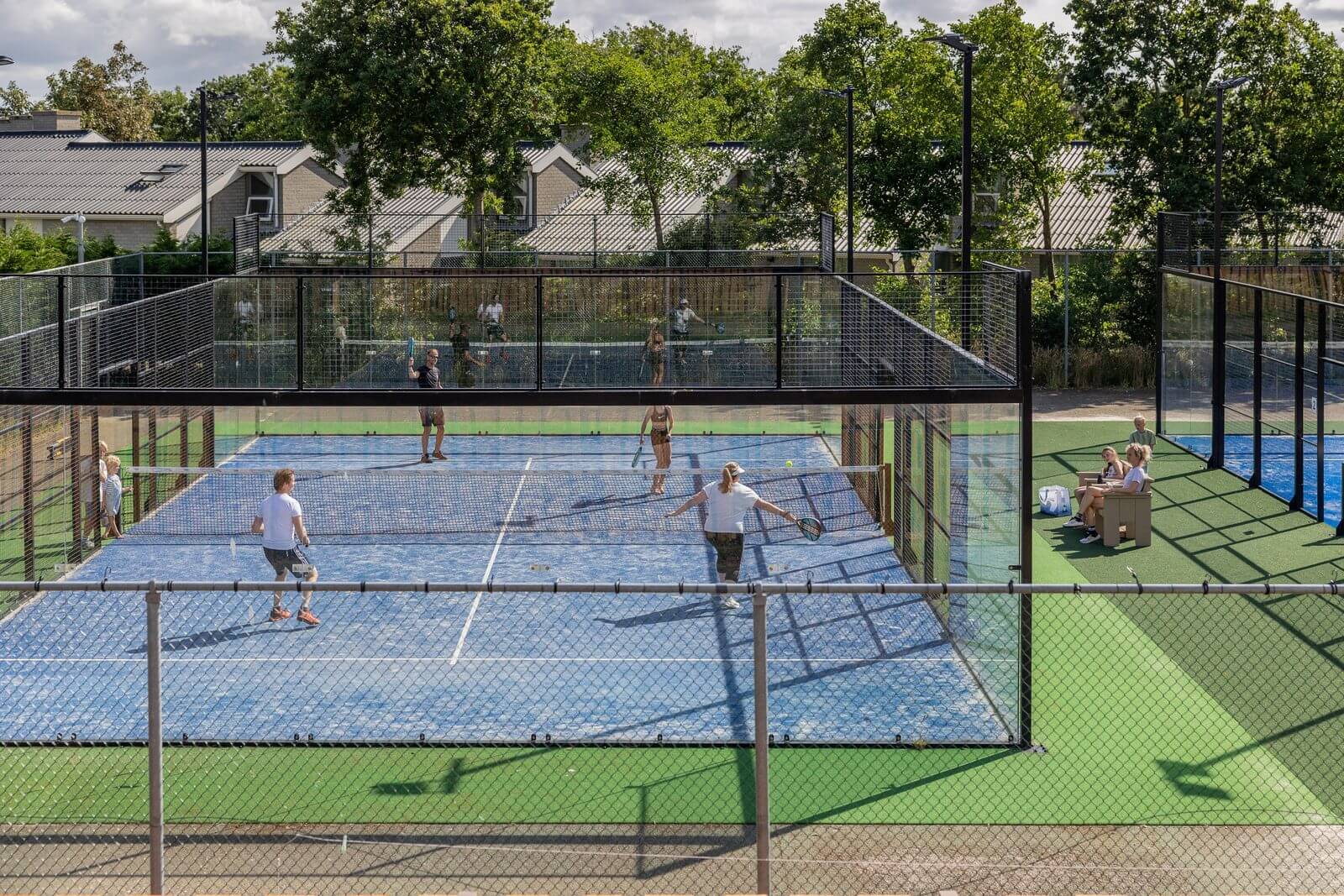 Natuurlijk kunnen jullie hier ook de baan op voor een fanatiek potje padel! Het park heeft een eigen baan waar je eenvoudig via de app een tijdslot reserveert. Rackets en ballen huur je bij de receptie. Naast een padelbaan hebben ze ook een multicourt, pumptrack, midgetgolf, tennisbaan en fitnessclub dus voor de actieve vakantieganger is hier genoeg te doen!