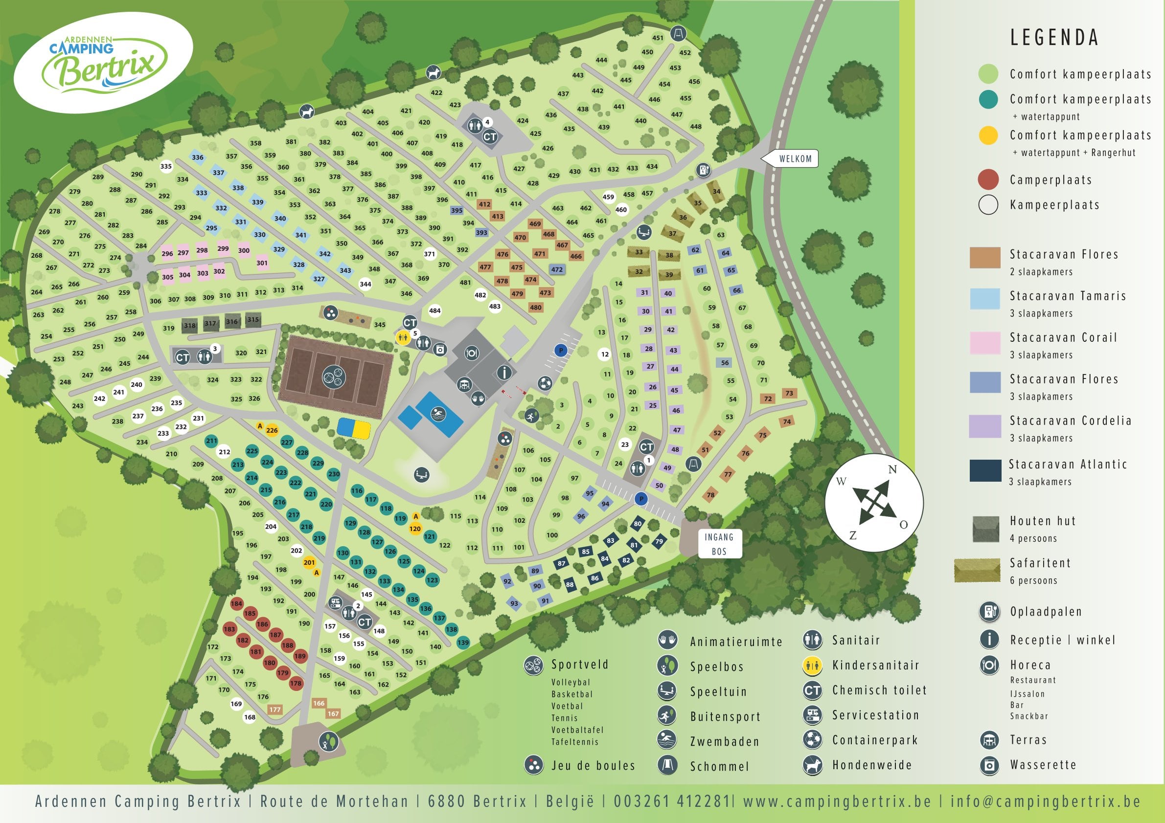 Op Ardennen Camping Bertrix kies je uit vijf verschillende kampeerplaatsen. De standaard kampeerplaats (75m²) en comfortplaats (90m²) hebben beide 10 ampère elektriciteit en zijn geschikt voor 6 personen. Je kunt ook kiezen voor een comfortplaats met watertappunt óf voor een comfortplaats met watertappunt én Rangerhut. In die Rangerhut kunnen kinderen lekker spelen en zelfs slapen! Voor camperaars zijn er speciale camperplaatsen van 90m². Let op: heb je een ACSI-campingcard of Camping Key Europe card? Meld dit dan bij het boeken in het opmerkingenveld.