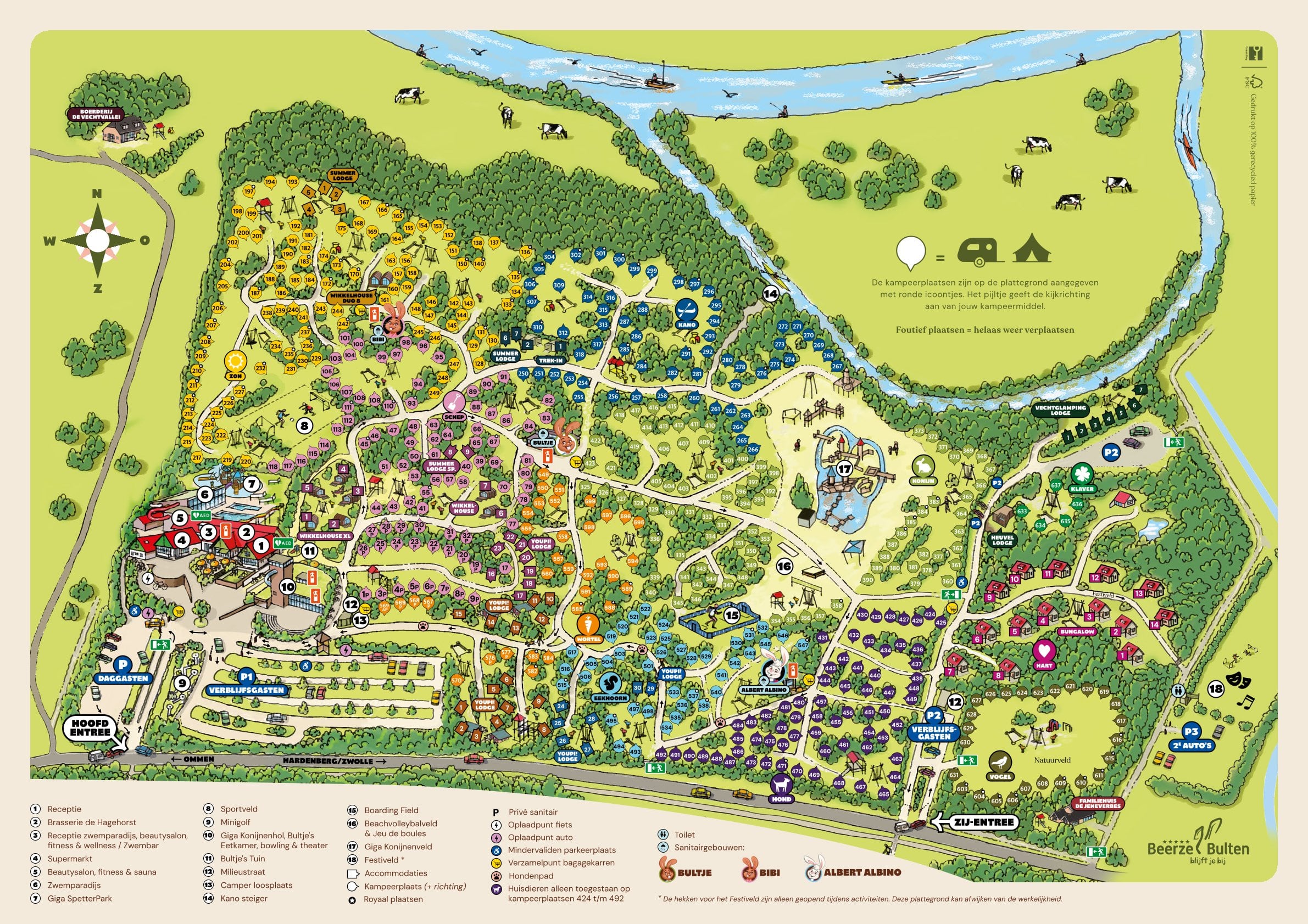 Beerze Bulten is een 5-sterren vakantiepark midden tussen de bossen van het Overijsselse Vechtdal, winnaar van de ANWB Camping van het Jaar 2023. Hier vind je extra ruime kampeerplaatsen van 80 tot 140 m² met volop privacy, en ook een enorm aanbod aan luxe accommodaties, een spectaculair zwemparadijs, het unieke ondergrondse speelparadijs Giga Konijnenhol, uitgebreide wellness faciliteiten én een bomvol animatieprogramma. Of je nu komt kamperen, verblijft in een stoere glamping lodge of kiest voor een ruim familiehuis: vervelen is hier geen optie tijdens je weekendje weg!