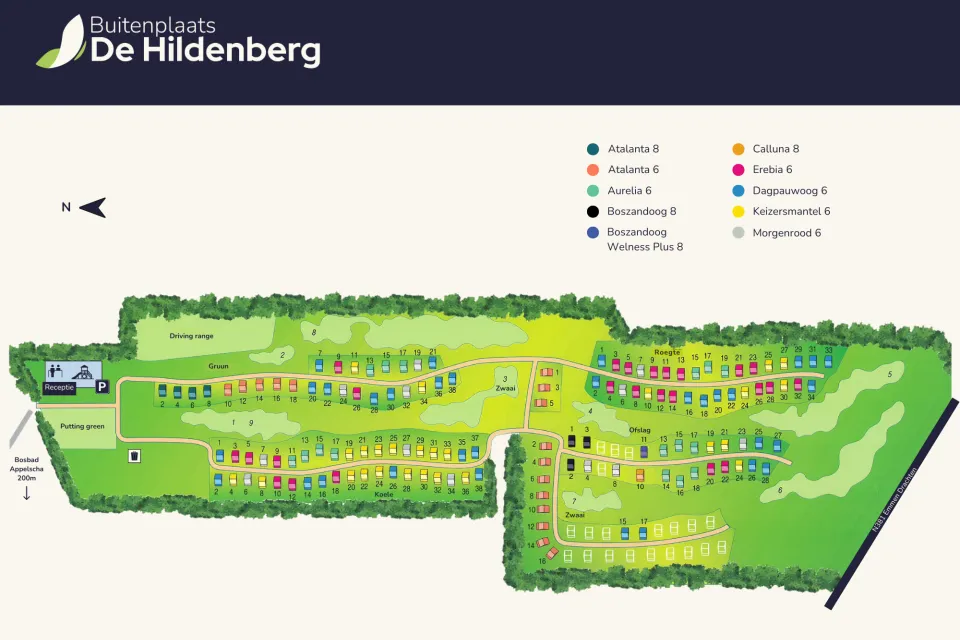 De 18-holes golfbaan (2×9 holes) maakt dit park bijzonder geschikt voor golfliefhebbers, al hoef je absoluut geen golfer te zijn om hier te genieten. De natuurlijke ligging is echt schitterend: je loopt zo het bos in voor prachtige wandel- en fietstochten. Het park biedt fietsverhuur, en vanuit hier kun je gemakkelijk Westerbork, Assen en andere mooie plekken in Friesland en Drenthe verkennen. Restaurant De Hildenberg is een fijne plek om een hapje te eten.