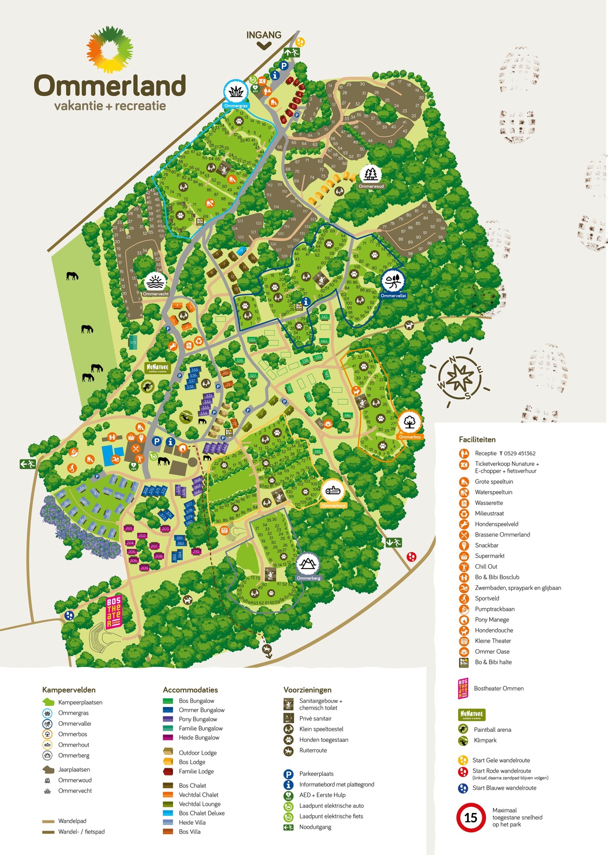 Camping Ommerland ligt tussen uitgestrekte bossen, glooiende heidevelden en prachtige zandverstuivingen in het hart van het Overijsselse Vechtdal. Deze ANWB 5-sterren Top Camping biedt alle rust van de natuur met een geweldig aanbod aan faciliteiten: waterglijbanen, een klimbos tot 10 meter hoogte, een eigen pony manege met 20 shetlandpony’s, bowlingbanen, wellness bij Ommer Oase en zelfs een ondergrondse Chill Out voor tieners. Of je nu kiest voor een luxe accommodatie met sauna, een sfeervolle glamping lodge of een ruime kampeerplaats – op deze bosrijke camping in Ommen genieten jullie van een heerlijke vakantie met het hele gezin!